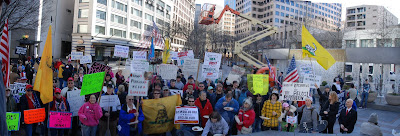 “Today, I had the opportunity to attend a protest in Seattle against the stimulus bill. It was an orderly affair with a few speeches, a recording of Ronald Reagan waxing on big government and a kumbaya moment singing the National Anthem. (Mind you, I like singing the National Anthem and the crowd was in pretty good tune. But it’s still kumbaya.)”