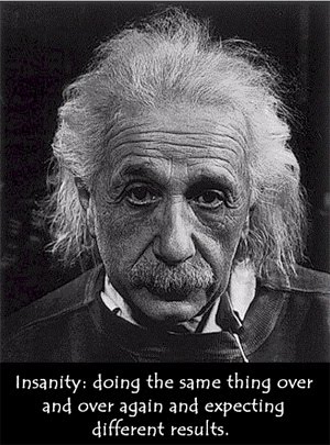 But, no, really, his intentions are good… Well, even if they were, one must remember Einstein’s definition of insanity: Doing the same thing over and over again and expecting different results.
