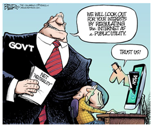 On Thursday the FCC moved to regulate the Internet via what’s commonly called Net Neutrality – although like Obamacare before it was passed, we don’t know everything that’s included in it! Net Neutrality is beyond a doubt the single most despicable thing Barack Obama has done as president. (The FCC is ostensibly an independent agency, but under Obama it’s been anything but.) The big push for Net Neutrality came from Silicon Valley content companies who were whining that ISPs such as Comcast, Time Warner and AT&T were slowing or threatening to slow content that sucked up massive amounts of bandwidth. They are after all the ones who have to invest to expand that bandwidth. These ISPs were at the same time telling companies like Netflix and Google that they could ensure timely delivery of their content if they paid for the extra bandwidth that was being used. The Silicon Valley companies squealed to Barack Obama and he started leaning on the FCC.