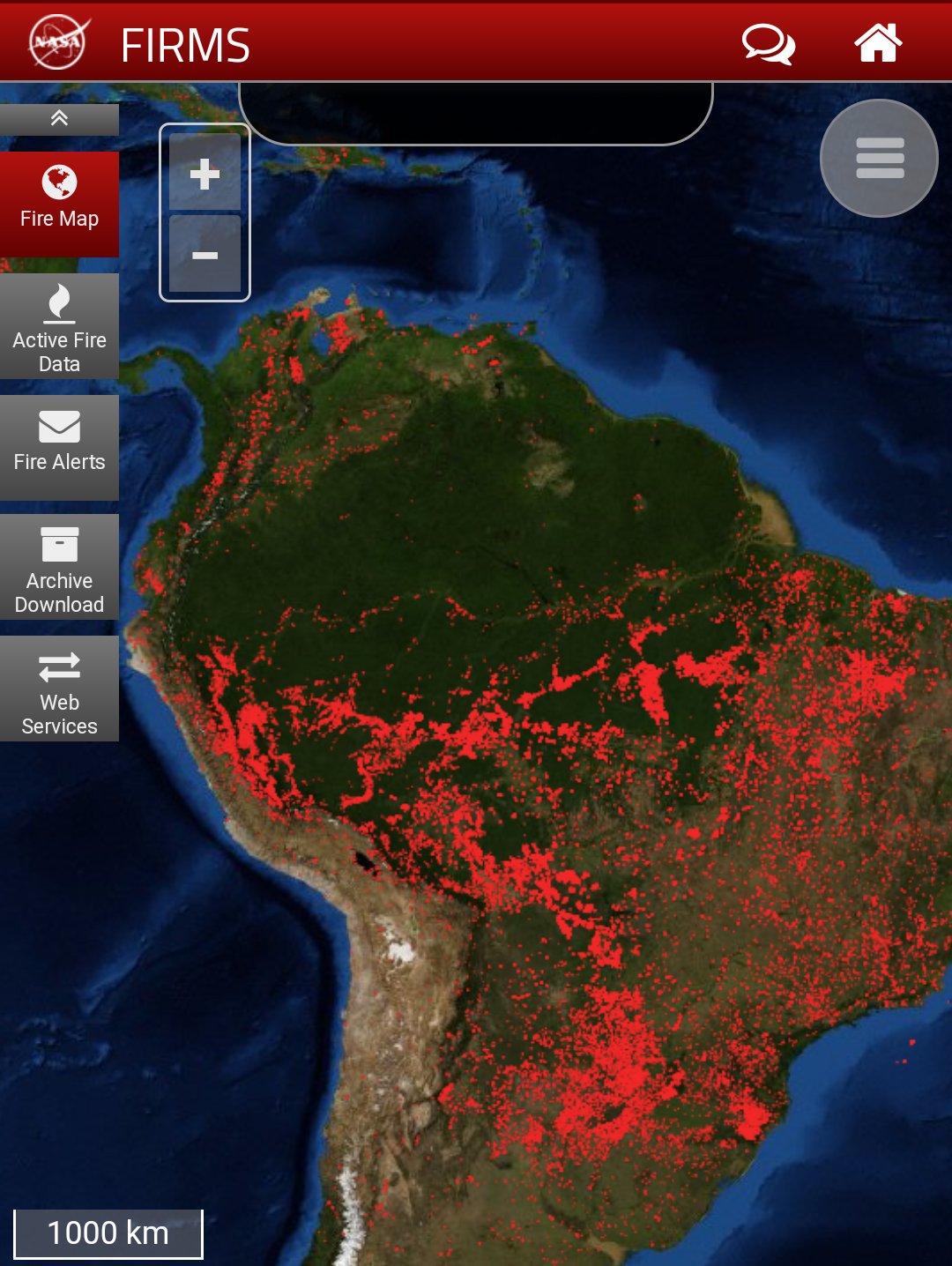 There’s an old truism that a picture is worth a thousand words. Here’s a NASA satellite image of the Amazon rain forest taken August 22, 2019, showing the heat signatures of the current fires. Does this appear to be irrelevant?