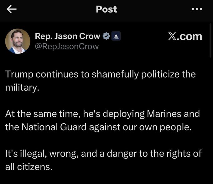 democrats have been railing against Trump and referring to ICE and the Guard as Nazis and the Gestapo. Jason Crow may have contributed to this horror.