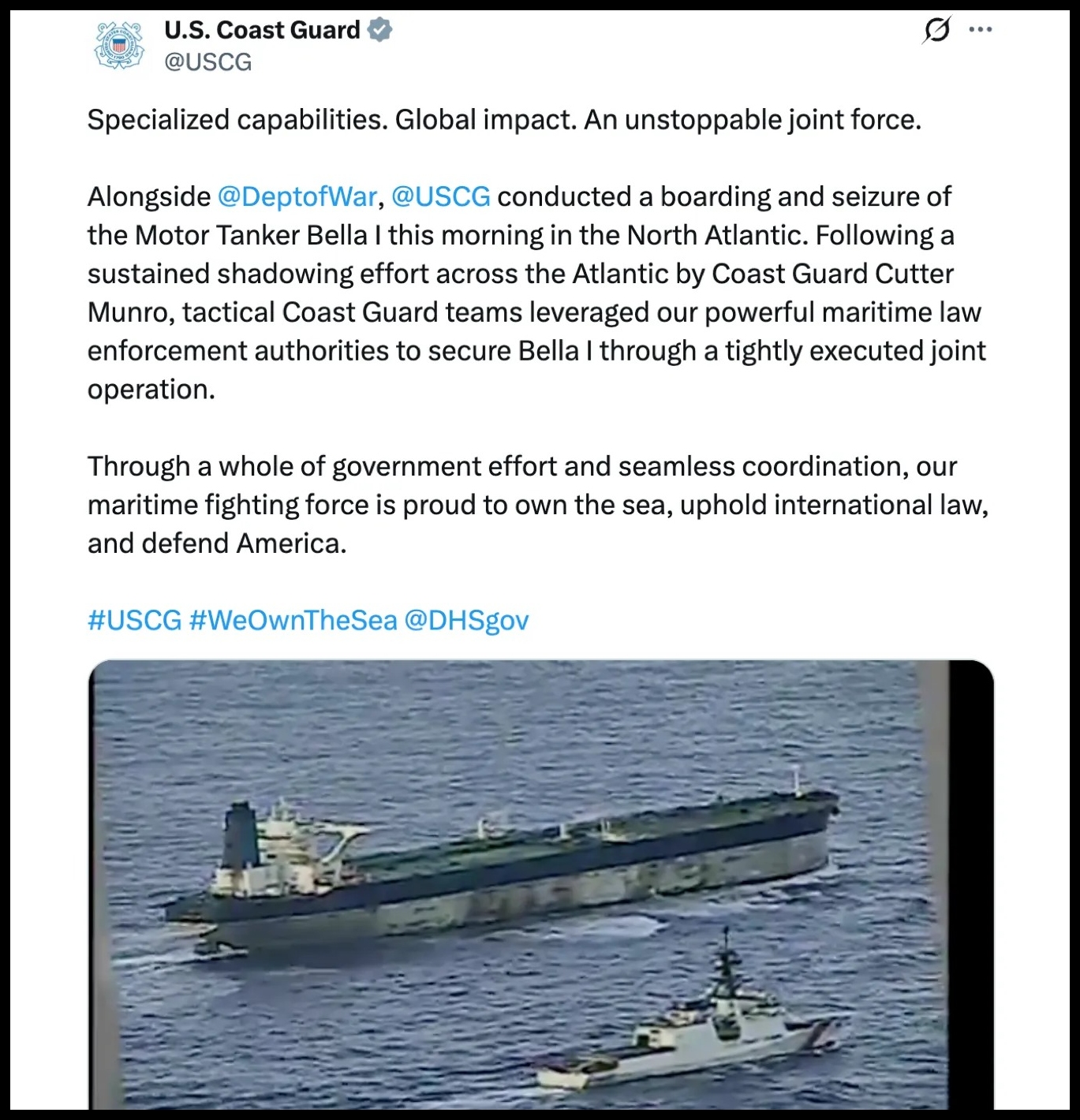 🔥 Along those lines, the military executed two more dramatic missions yesterday, all buried in the avalanche of news. The Washington Post sailed out the story under the headline, “U.S. seizes two tankers as Venezuelan oil blockade intensifies.” The sub-headline noted that, “In separate operations, a Russian-flagged vessel was boarded in the North Atlantic and another ship was apprehended near the Caribbean.”