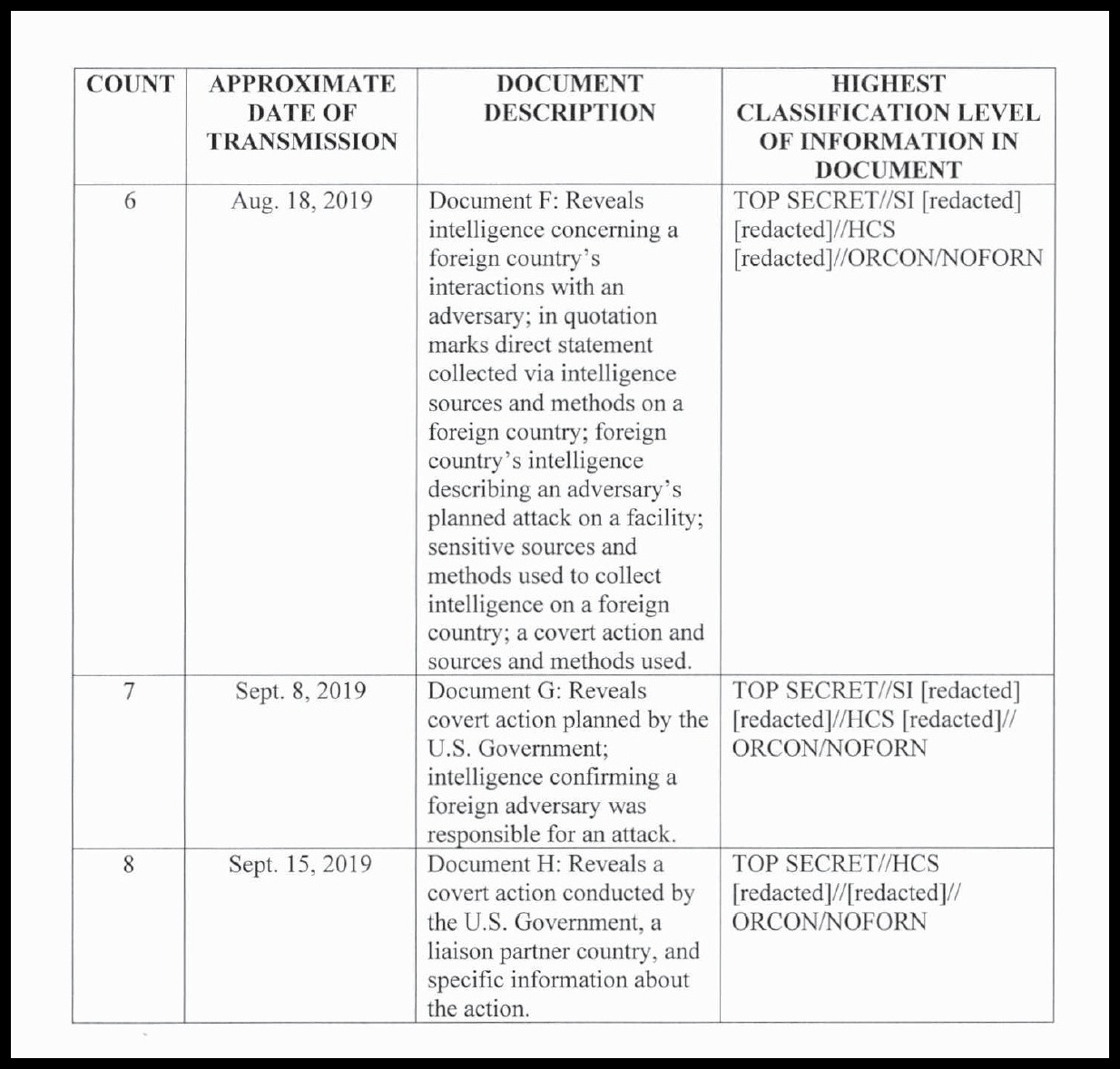 What the public didn’t know – until this afternoon’s release of the indictment – was that during his time as NSA, Bolton abused his position “by sharing more than a thousand pages of information about his day-to-day activities as the National Security Advisor – including information relating to the national defense which was classified up to the TOP SECRET/SCI level – with two individuals.”